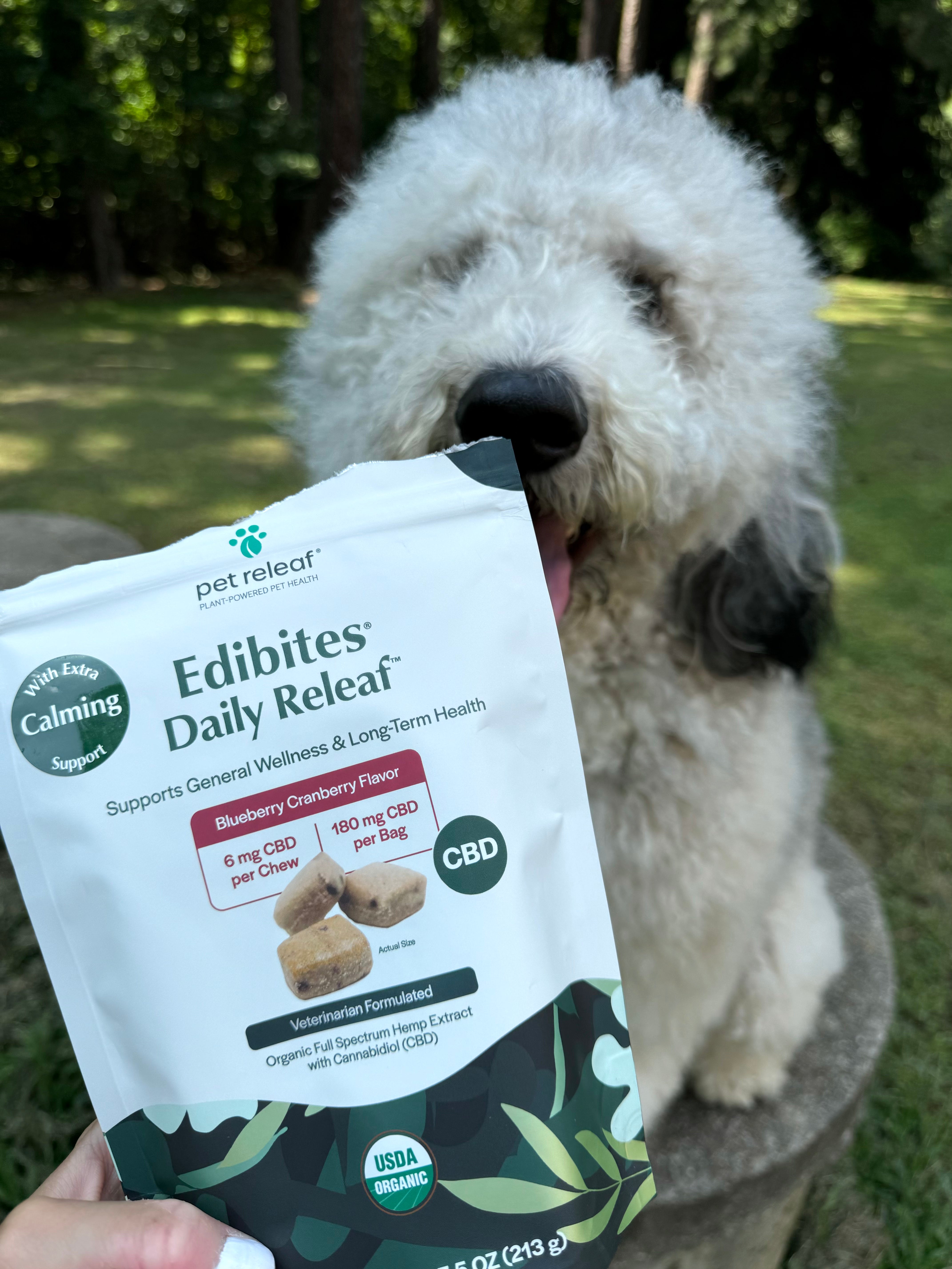 Pet Releaf’s Daily Releaf Edibites are packed with real blueberries and dried cranberries pieces designed to satisfy your pup’s sweet tooth. Trust us - they'll love the flavor!