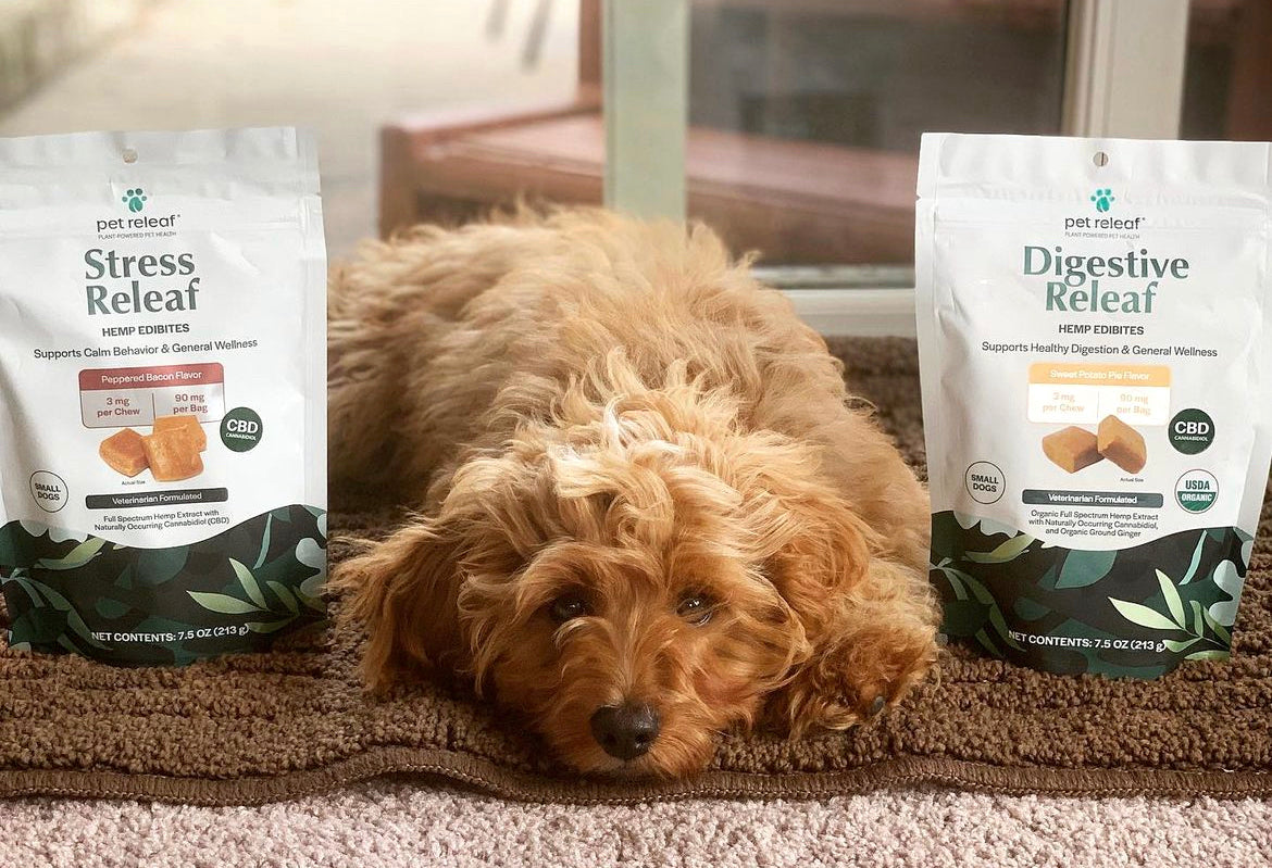 Pet Releaf Edibites are all-natural, CBD-infused calming chews for dogs made with organic, non-GMO ingredients. Each Edibite is formulated with specific functional ingredients to support various aspects of your dog's health: