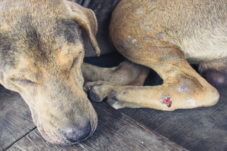 To manage somatic discomfort, start by cleaning any wounds using a pet-safe disinfectant, such as a saline solution and warm water. Then, bandage the wound with a pet-safe bandage to keep it clean and prevent licking. For acute injuries, rest is essential for recovery. If your dog is crate-trained, this can be a great opportunity to let them rest in their crate. Otherwise, keep them as inactive as possible to help speed up the healing process.