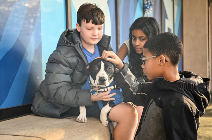 Some kids dropped to the floor and wrapped her in careful hugs; others hung back, only to be won over by a wagging tail and soft, steady eyes. “She immediately captured the hearts of all of our students and staff,” says Dr. Parish. “Students’ faces light up when they see her, and she brings joy into every room she enters.”