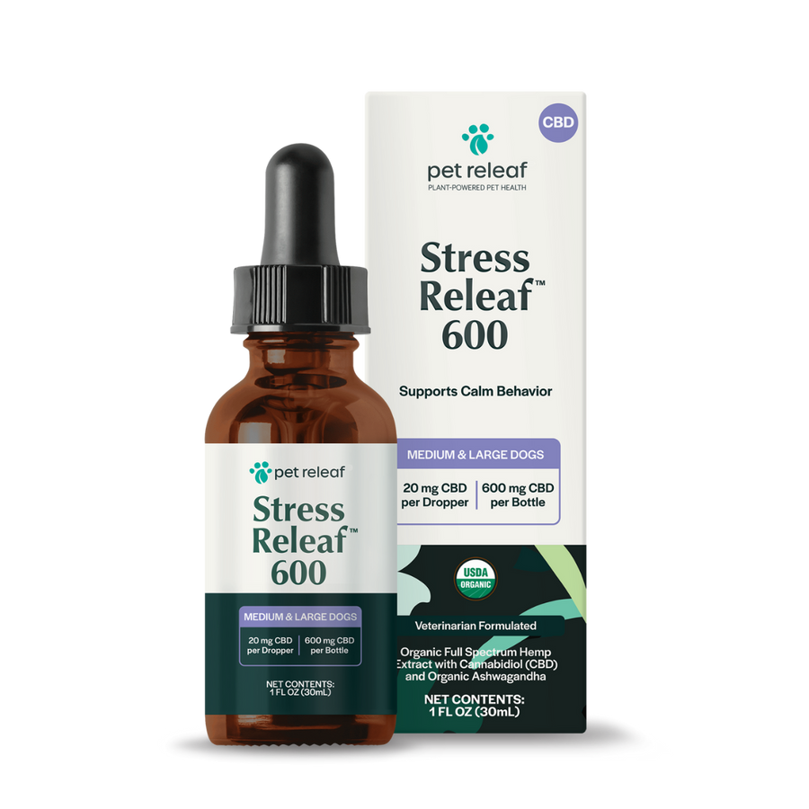 USDA Organic Stress Releaf CBD Oil for Dogs - M-L Dogs (26+ lbs) 600 mg/bottle